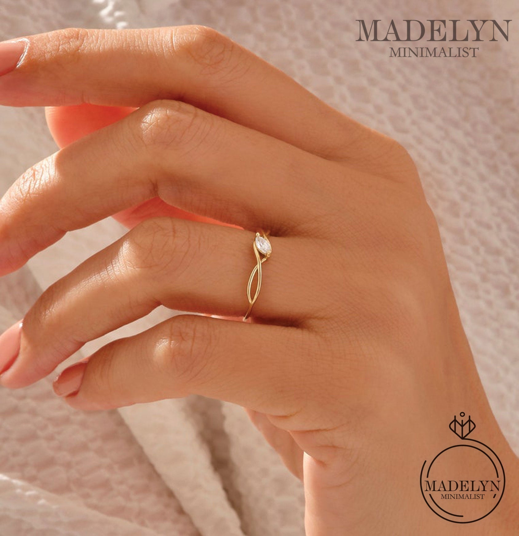 MADELYN MINIMALIST 14k Solid Gold Minimalist Marquise Solitaire Tiny Promise Ring | Gift For Mom, Sister