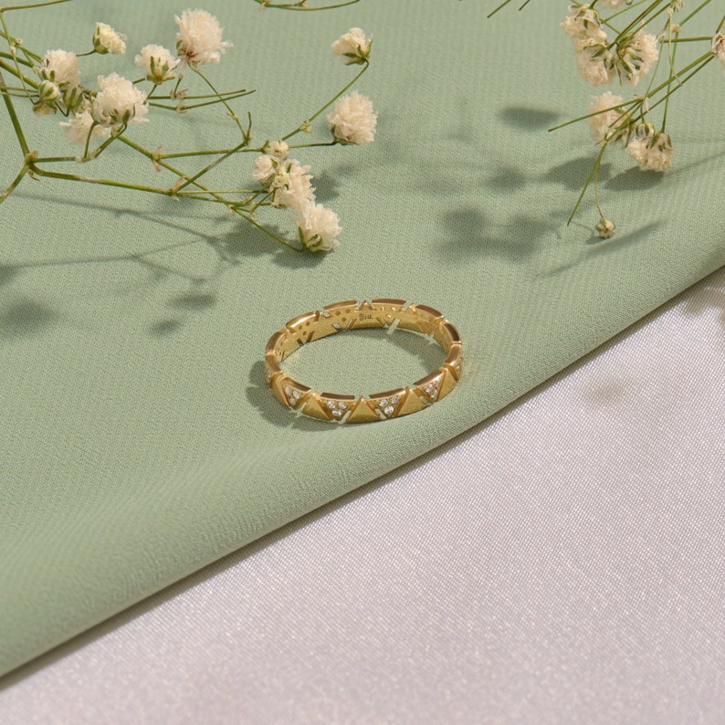 MADELYN MINIMALIST 14k Solid Gold Solid Eternity Pave Zig Zag Lab Diamond Wedding Ring | Gift for Mom, Wife, Her