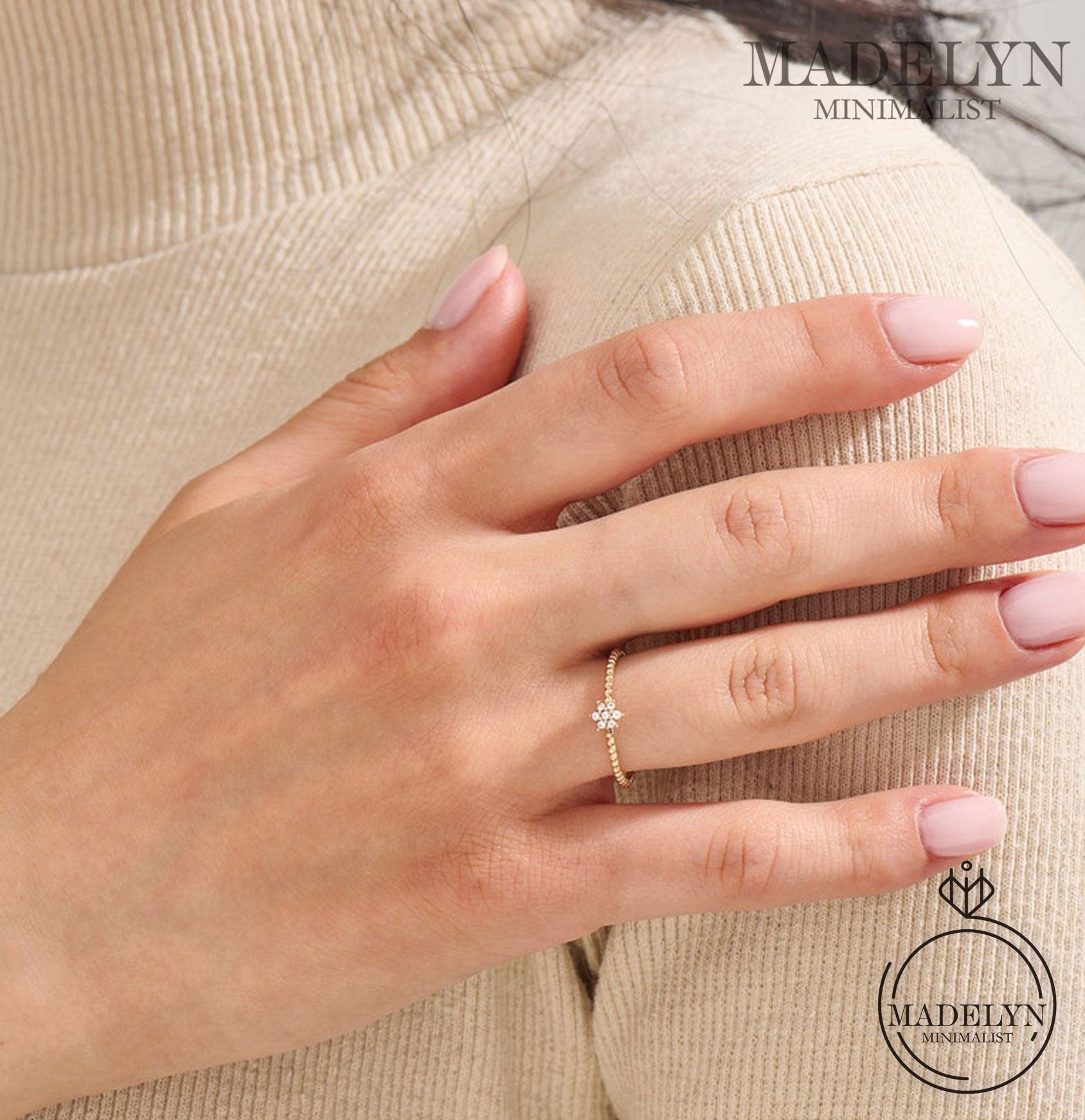 MADELYN MINIMALIST 14k Solid Gold Tiny Flower Promise & Solid Gold Cute Engagement Ring | Gift For Her, Mother