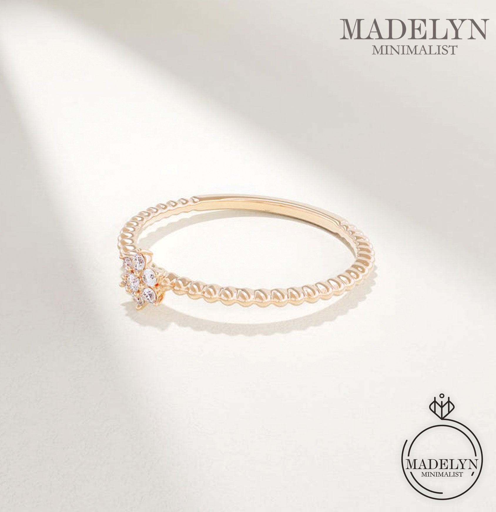 Celebrate delicate beauty with the MADELYN MINIMALIST 14k Solid Gold Tiny Flower Ring — a graceful blend of nature-inspired design and timeless elegance. This dainty promise ring features a tiny, charming floral motif crafted entirely from genuine 14k solid gold, making it a meaningful piece to symbolize love, purity, and fresh beginnings.