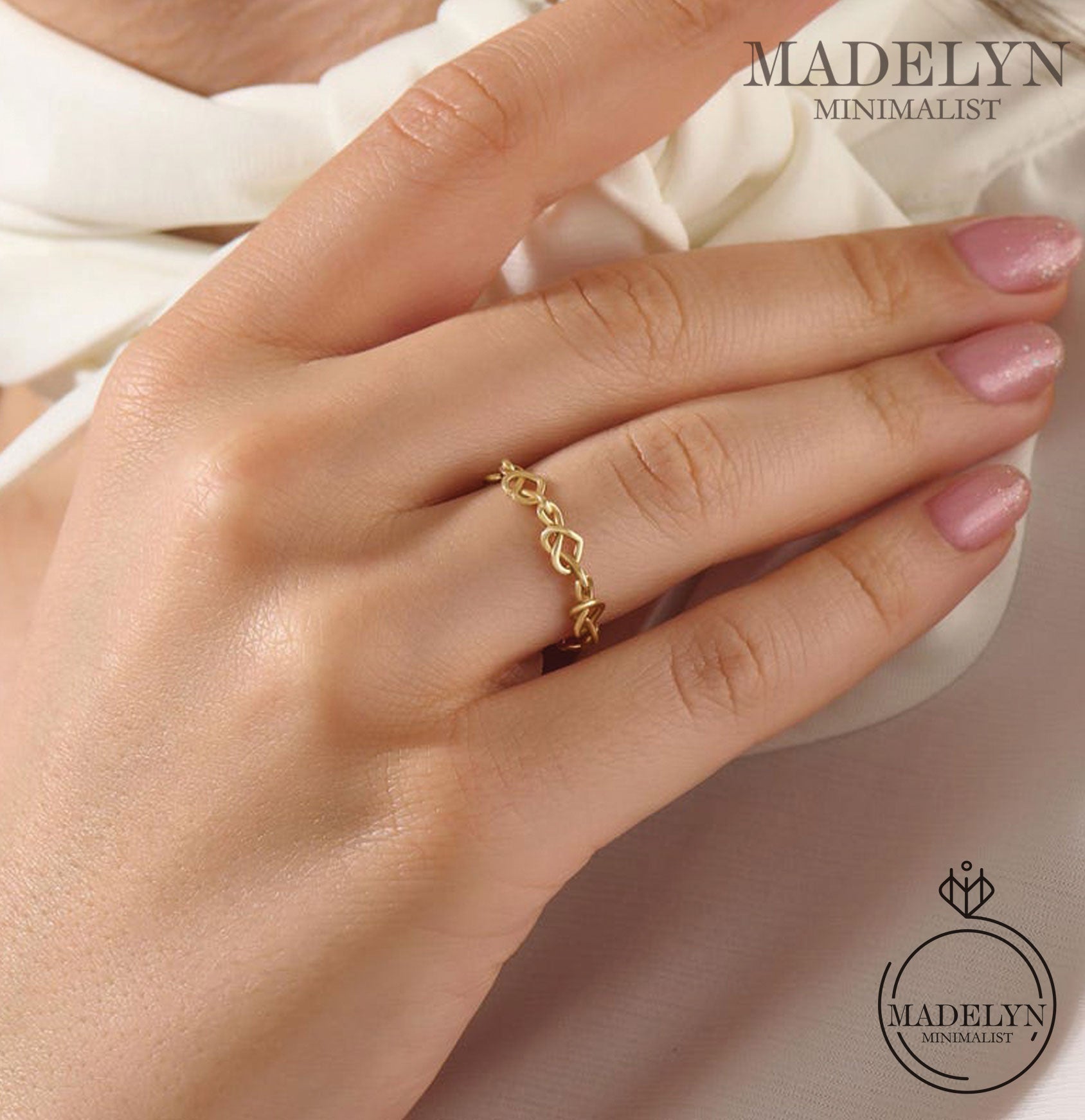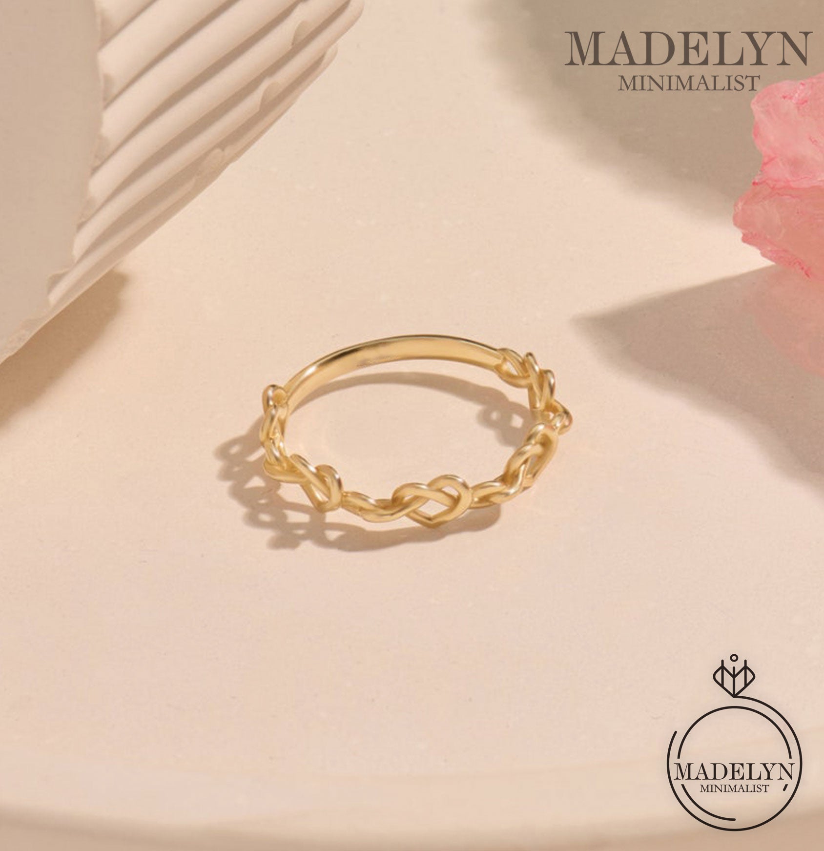 MADELYN MINIMALIST 14k Solid Gold Twisted Wire Pretzel Heart Ring, Minimal Barbed Wire Midi Ring | Gift for Her or Wife