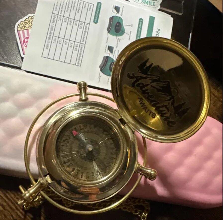 Unveil the mysteries of the cosmos with this Alethiometer-inspired brass pocket compass, a tribute to the ancient art of truth-seeking and navigation. Handcrafted from pure brass with a resplendent gold finish, this 50mm x 18mm functional compass is etched with intricate celestial motifs, radiating an aura of wonder and heritage. Make it uniquely theirs with custom engravings, crafting a legacy piece that embodies guidance, love, and shared dreams. Securely nestled in a hand-stitched leather case (2.5 x 2.5 x 1 inch), this enduring treasure blends elegance with resilience. A perfect gift for anniversaries, birthdays, or cherished milestones, it celebrates Mom and Dad as the guiding lights of your journey, forever bound by adventure and devotion.