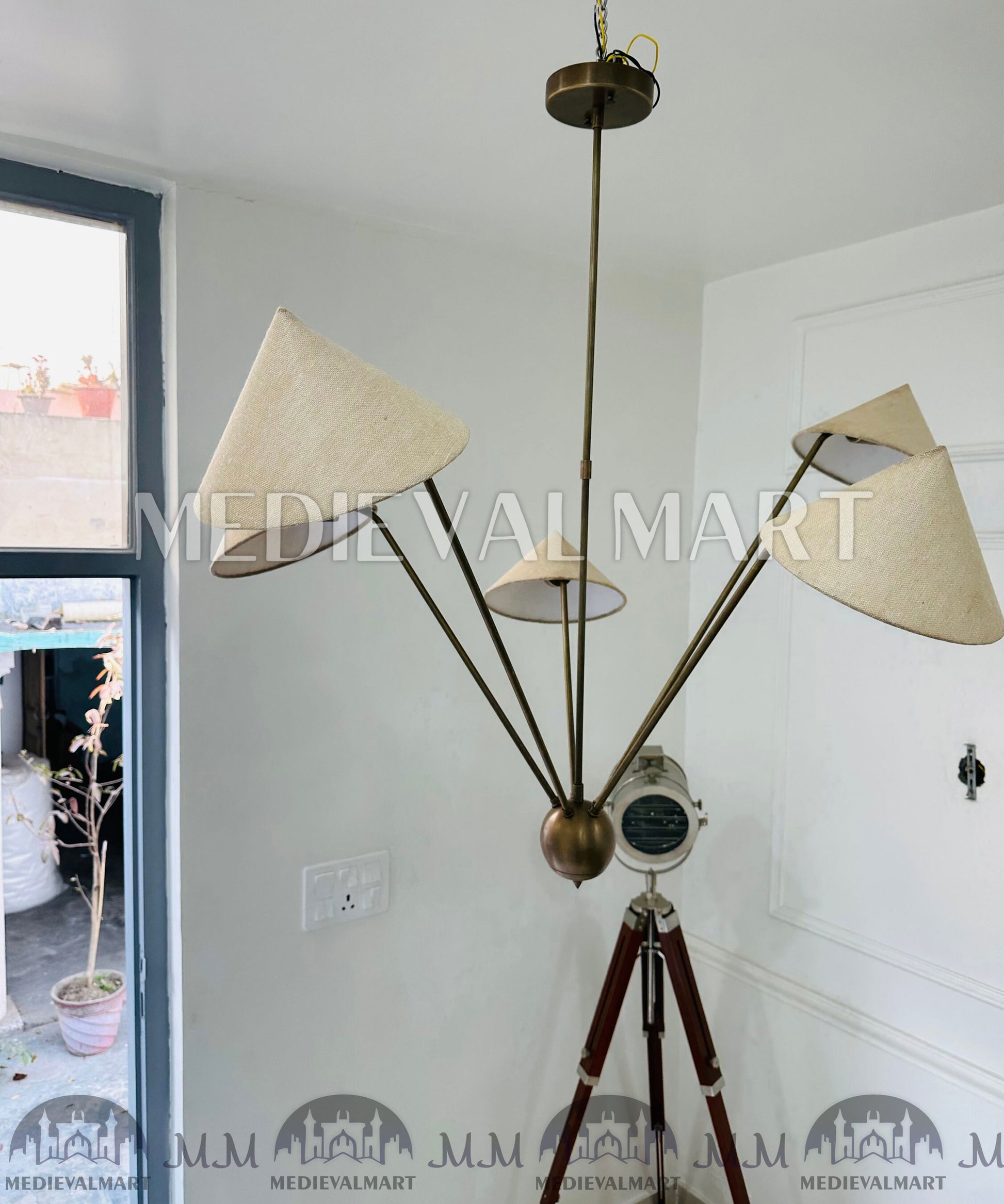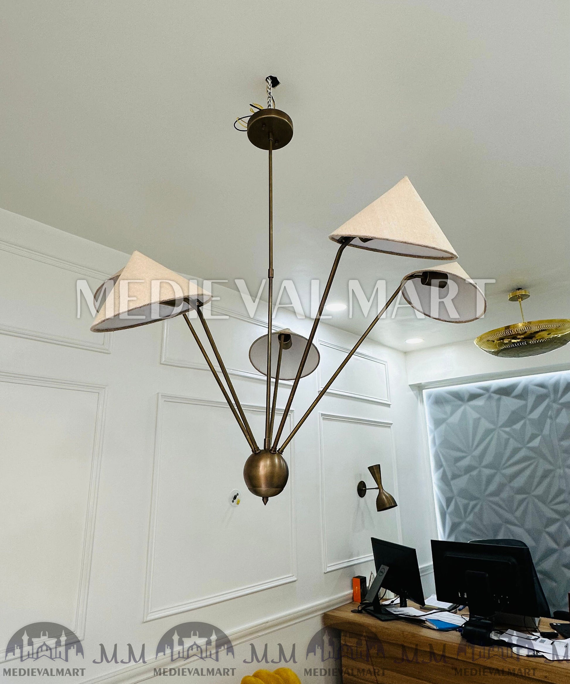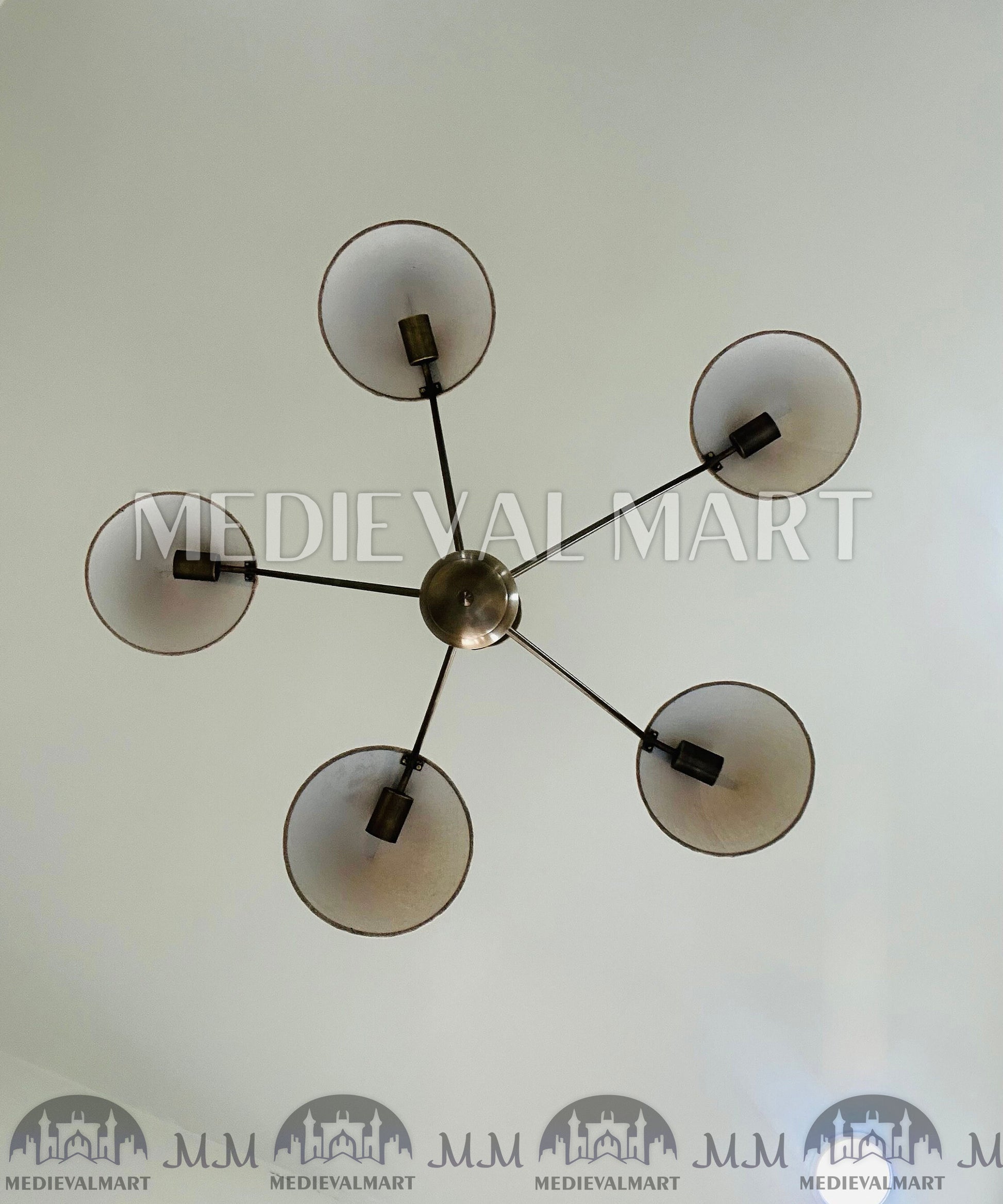 Illuminate your home with the MEDIEVALMART Brass Sputnik Chandelier, a masterpiece of Mid-Century Modern craftsmanship. Designed with five perfectly balanced brass arms, this chandelier captures the elegant geometry and timeless spirit of 1950s Italian lighting design.