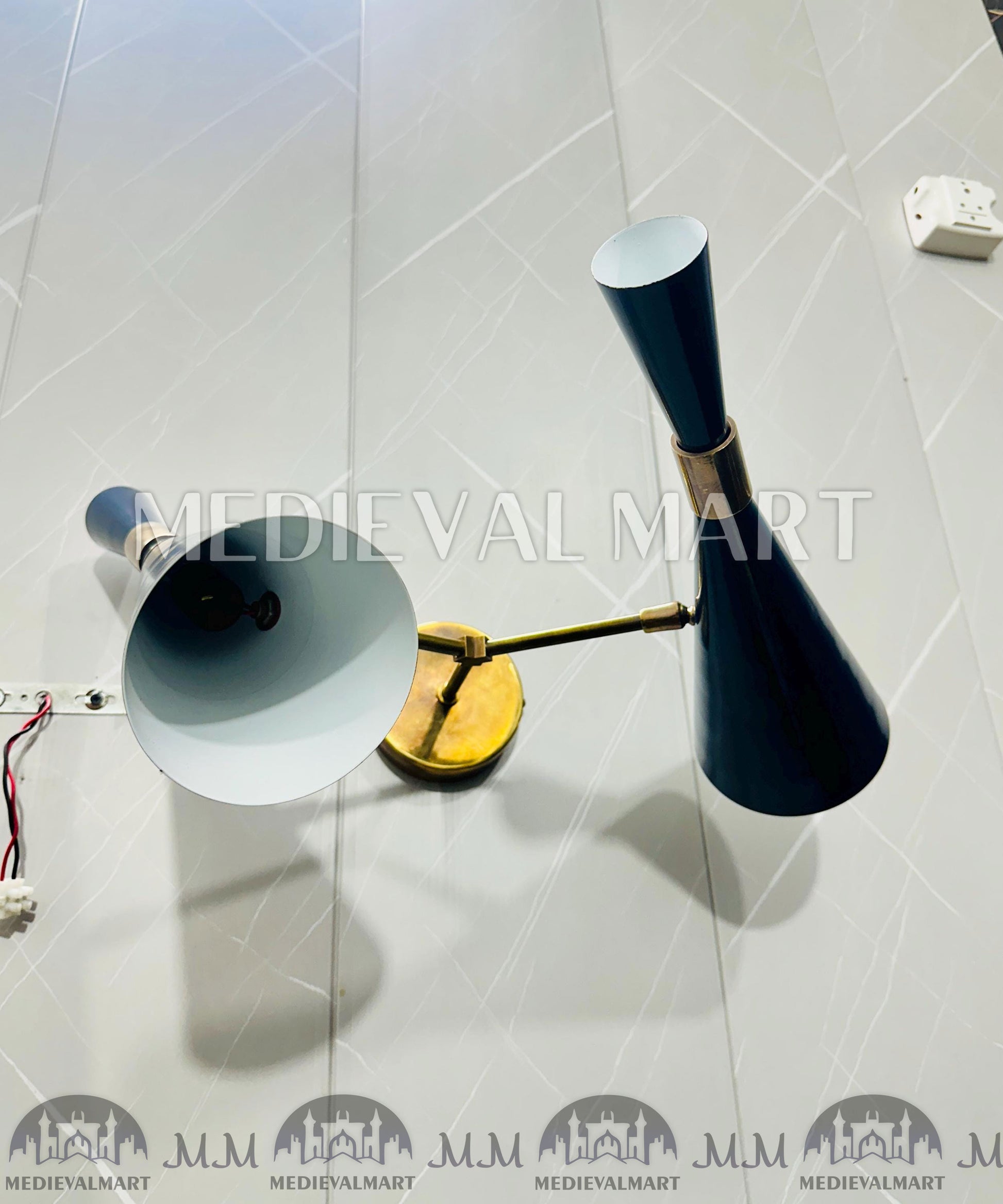 MEDIEVALMART Customized Handcrafted Mid-Century Brass Wall Sconce - Double Arm Shade Light Fixttue.