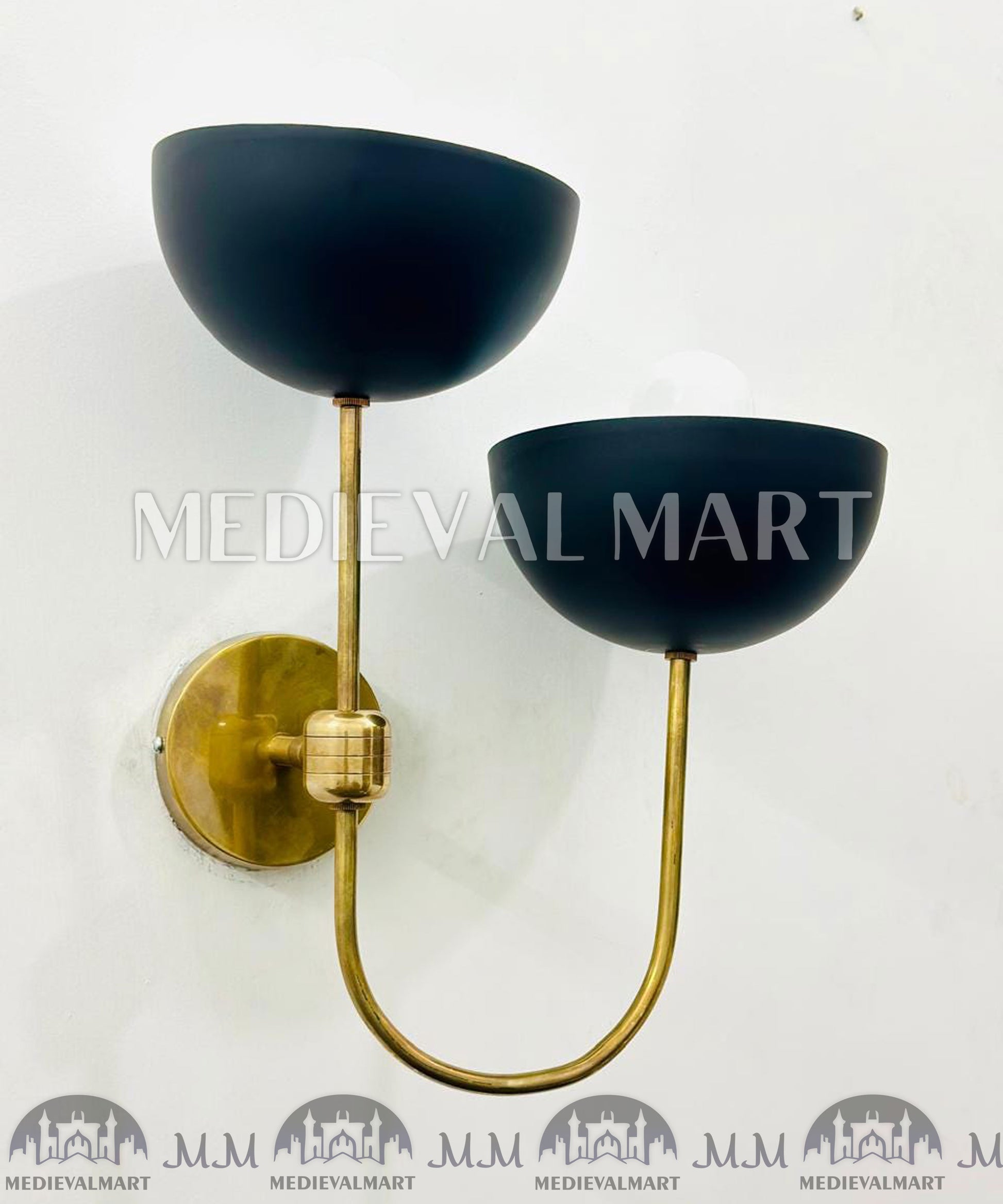 MEDIEVALMART Handmade Brass Mid Century Wall Sconce - Matte Black Bowl Sconce