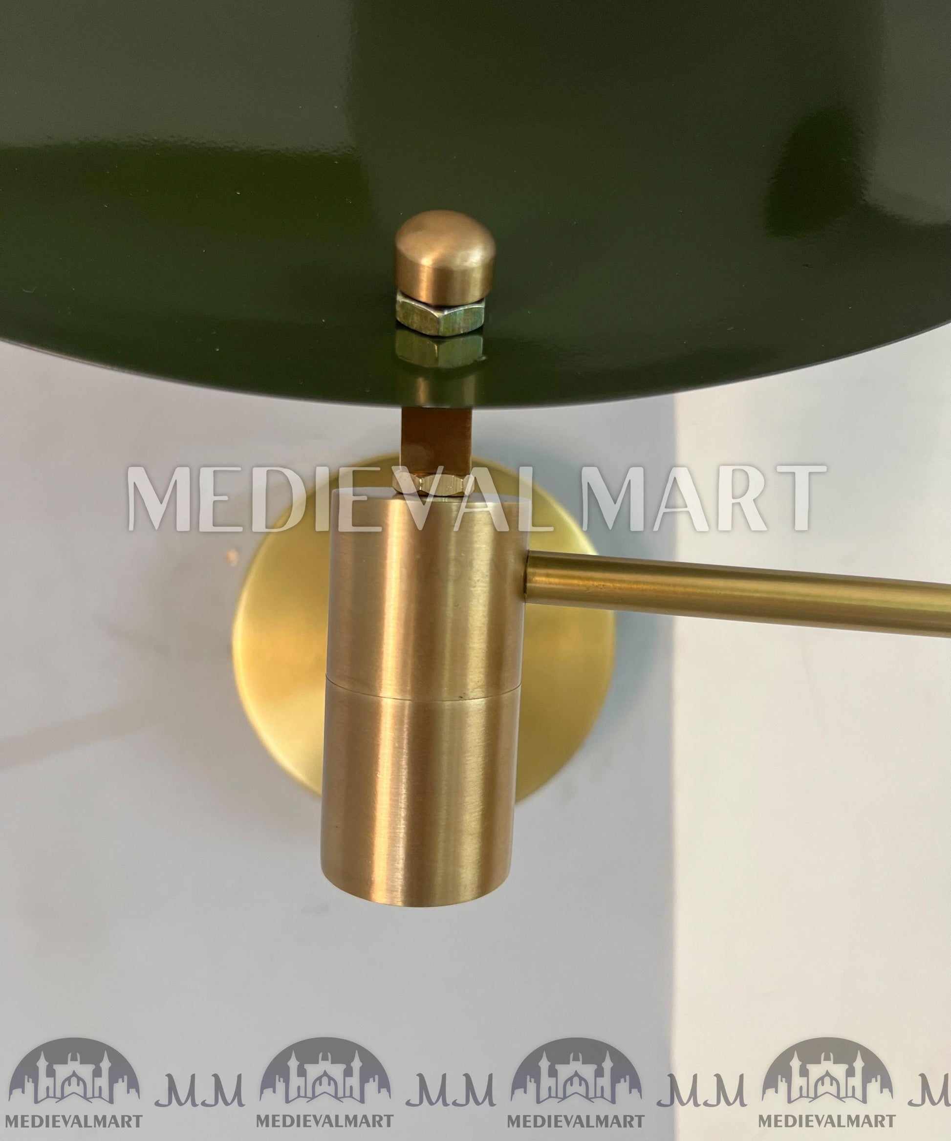 MEDIEVALMART Handmade Brass Wall Sconce: Mid-Century Modern Green Shade Lighting