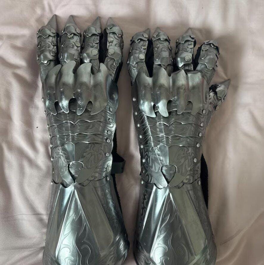 MEDIEVALMART LOTR Ringwraith Nazgûl-Inspired Silver Gauntlet Steel Medieval Armor Gloves
