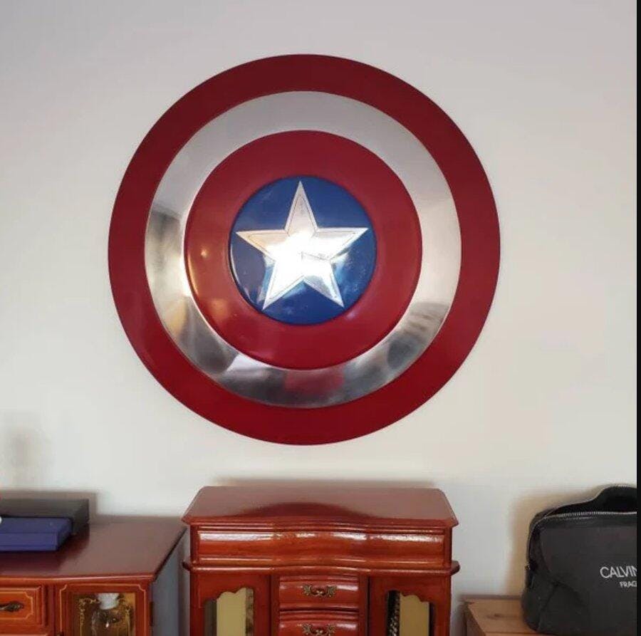 Introducing the Captain America Shield - a high-quality metal prop replica designed for Captain America cosplay enthusiasts.