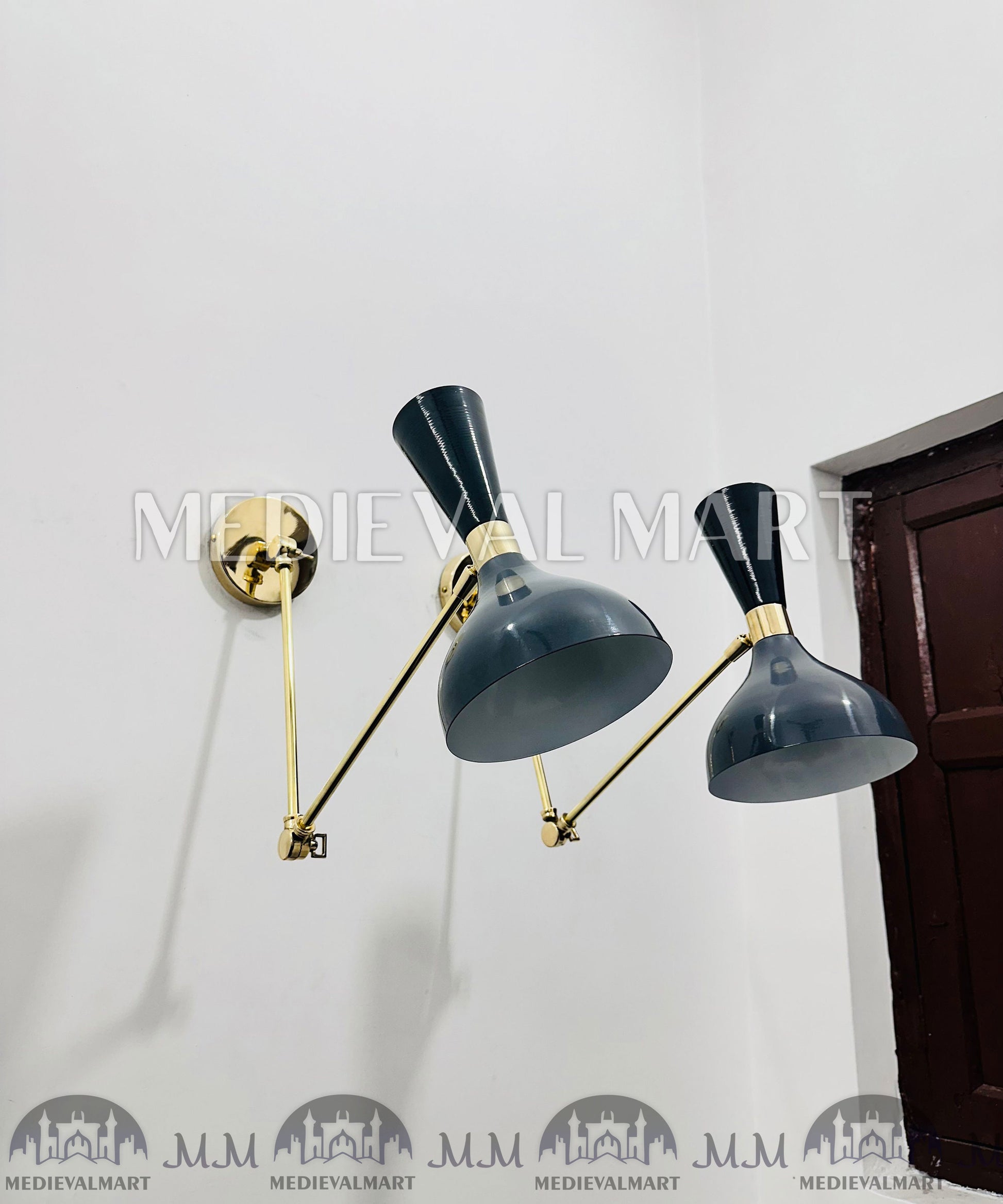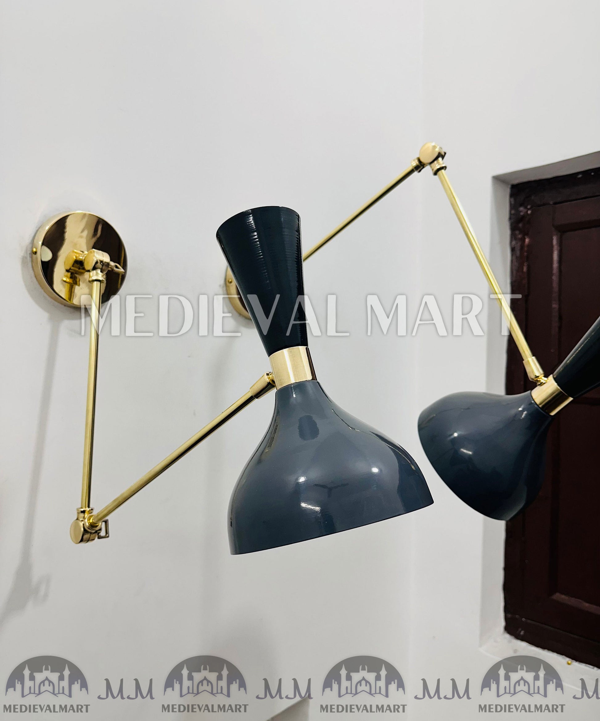 Enhance your interiors with the MEDIEVALMART Mid Century Brass Diabolo Wall Sconce Pair, featuring the iconic Italian Diabolo design in a sleek grey finish. Handcrafted from premium brass, these plug-in wall lights reflect MEDIEVALMART’s commitment to artisanal quality and mid-century elegance.