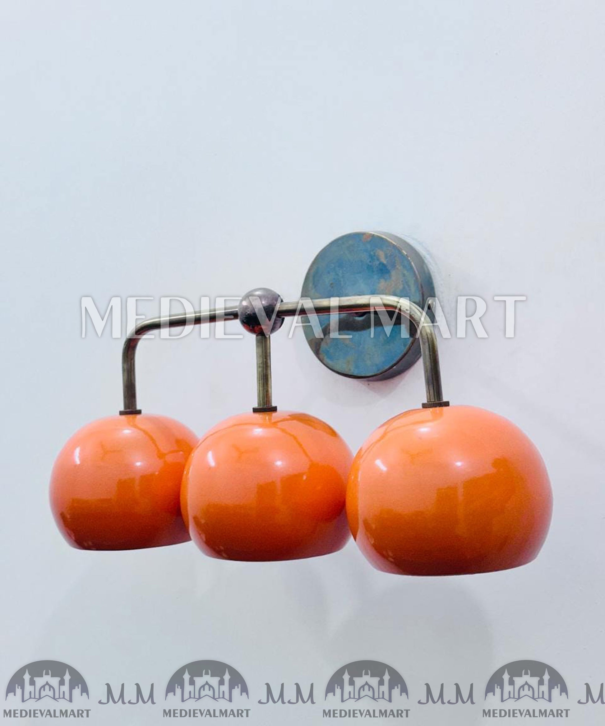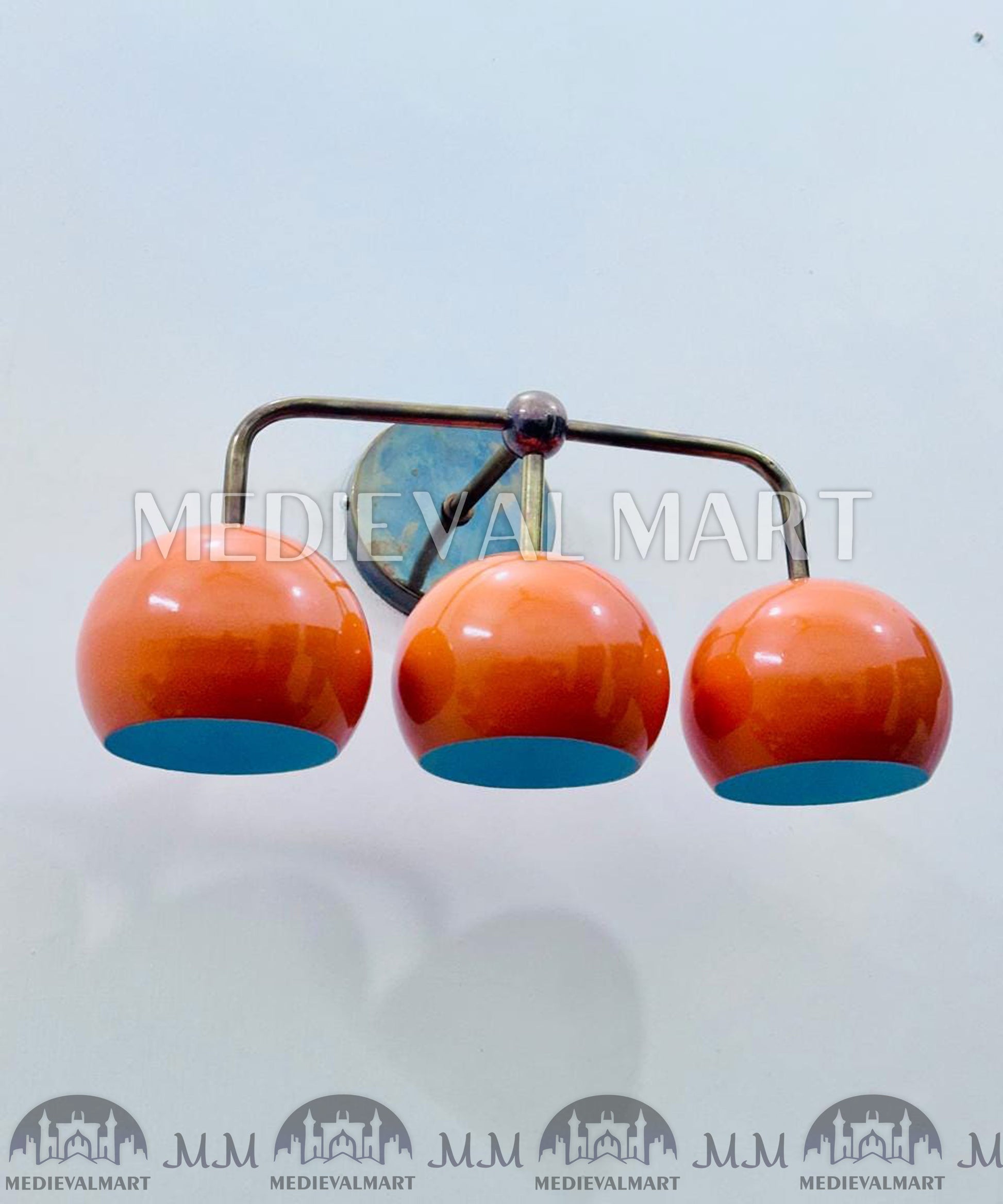 MEDIEVALMART Mid Century Italian Brass Diabolo 3 Bulb Wall Sconce Vanity Light