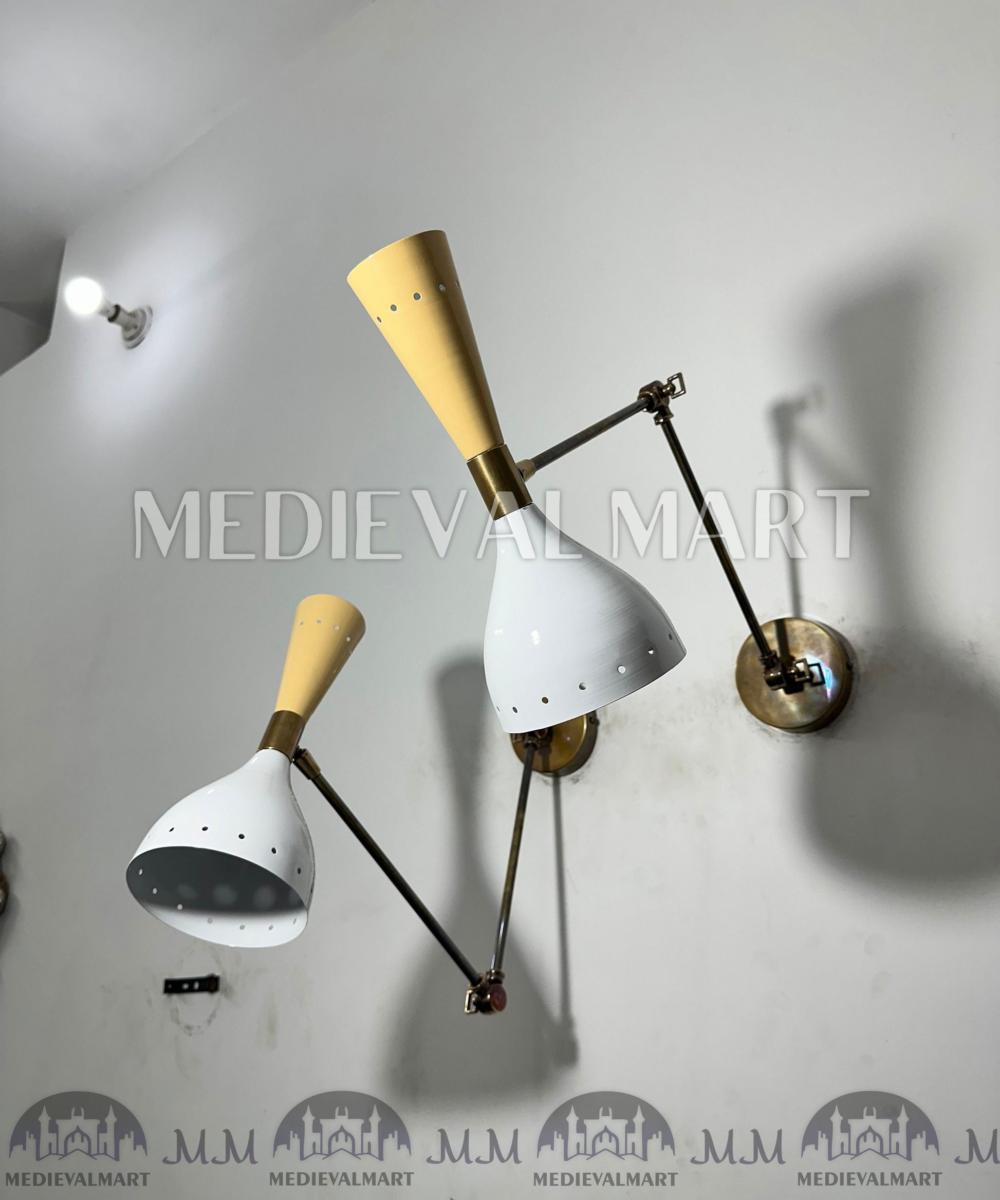 MEDIEVALMART Mid Century Italian Brass Wall Sconce Pair: Adjustable Reading Lamp
