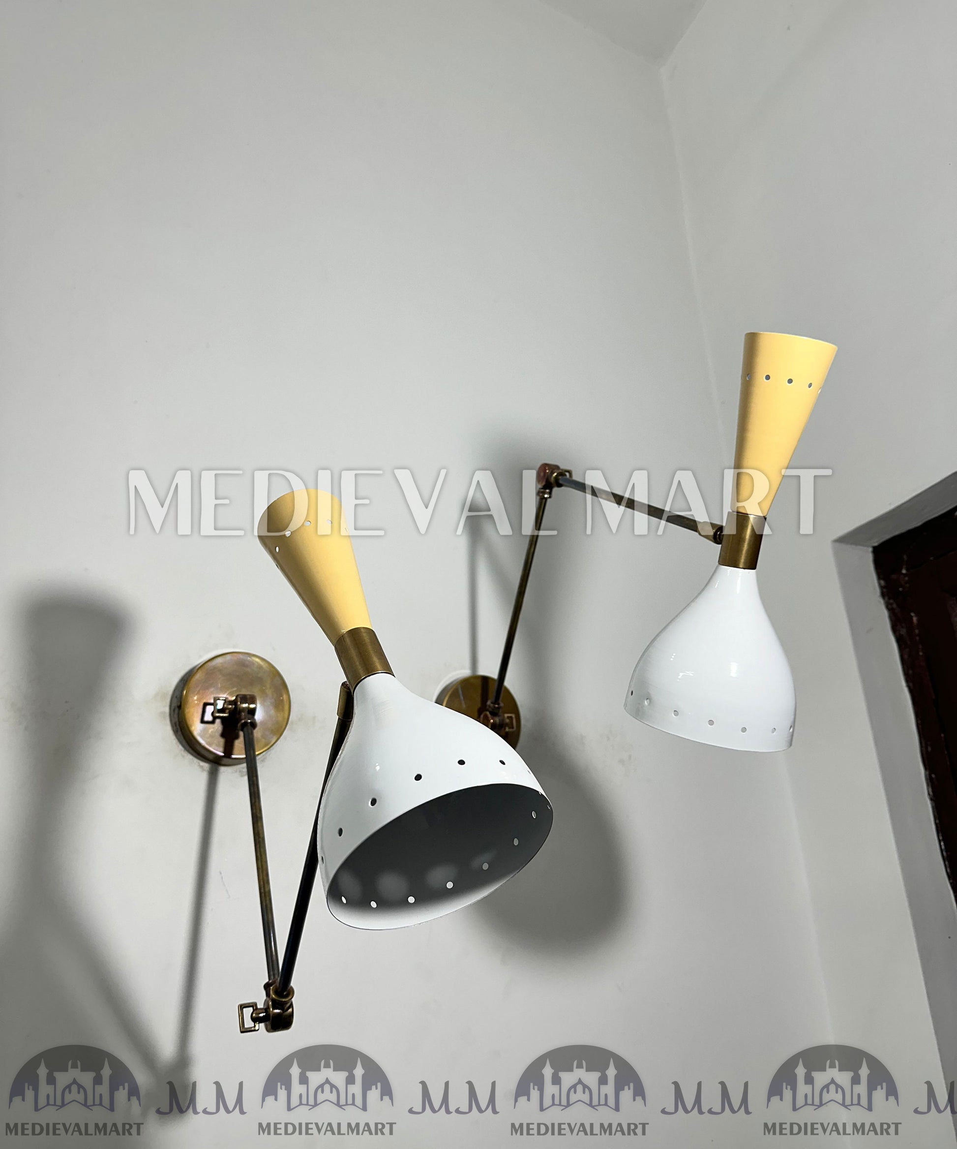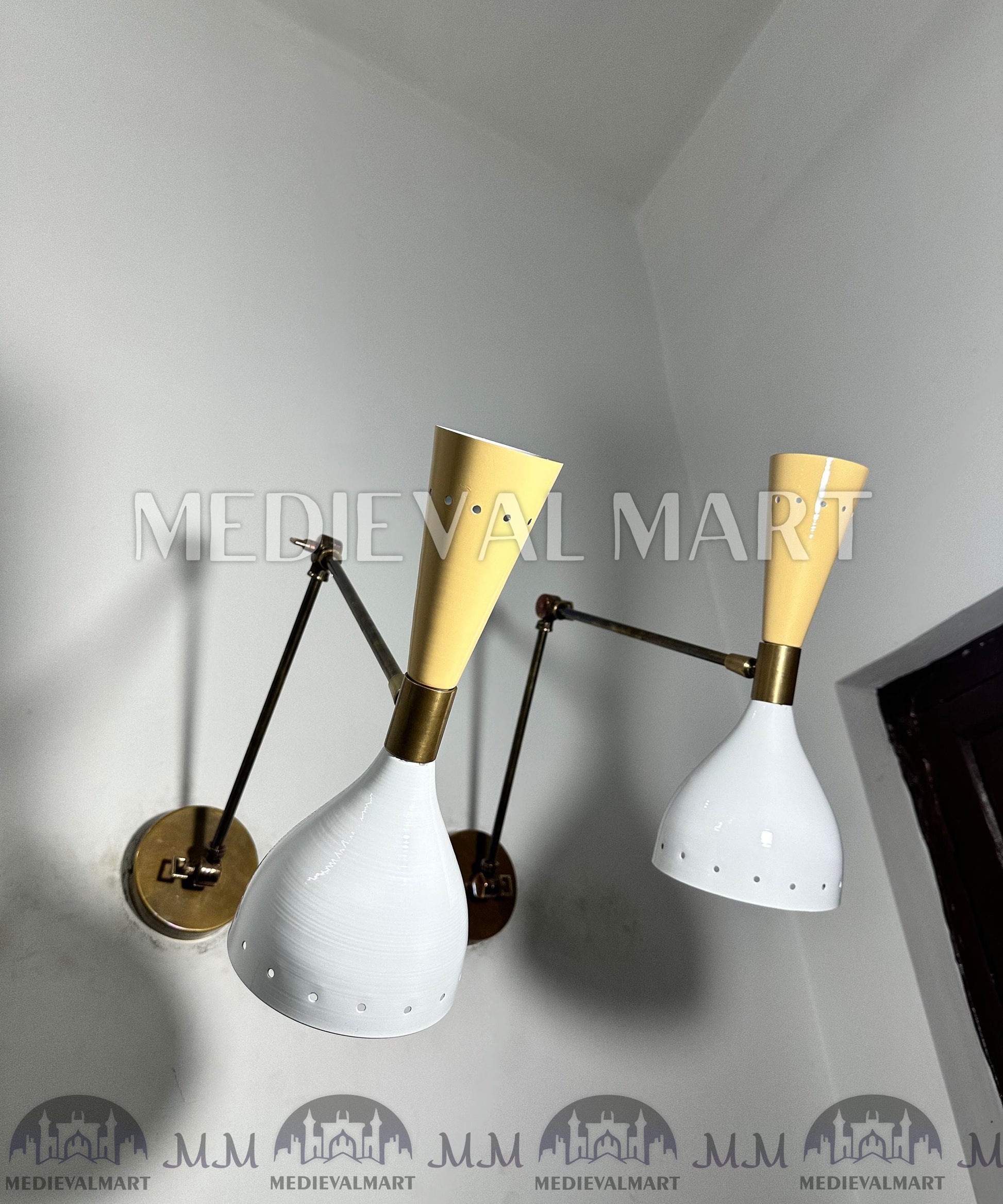 Elevate your interior with the MEDIEVALMART Mid Century Italian Brass Wall Sconce Pair: Adjustable Reading Lamp — a timeless fusion of 1950s Italian design and modern craftsmanship.