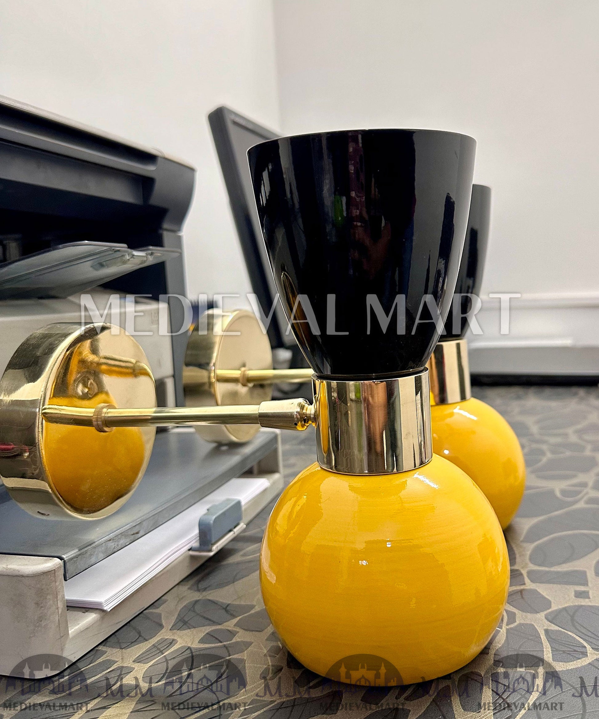 MEDIEVALMART Mid Century Italian Diabolo Wall Sconce Pair: Marigold & Black Bedside Lamps