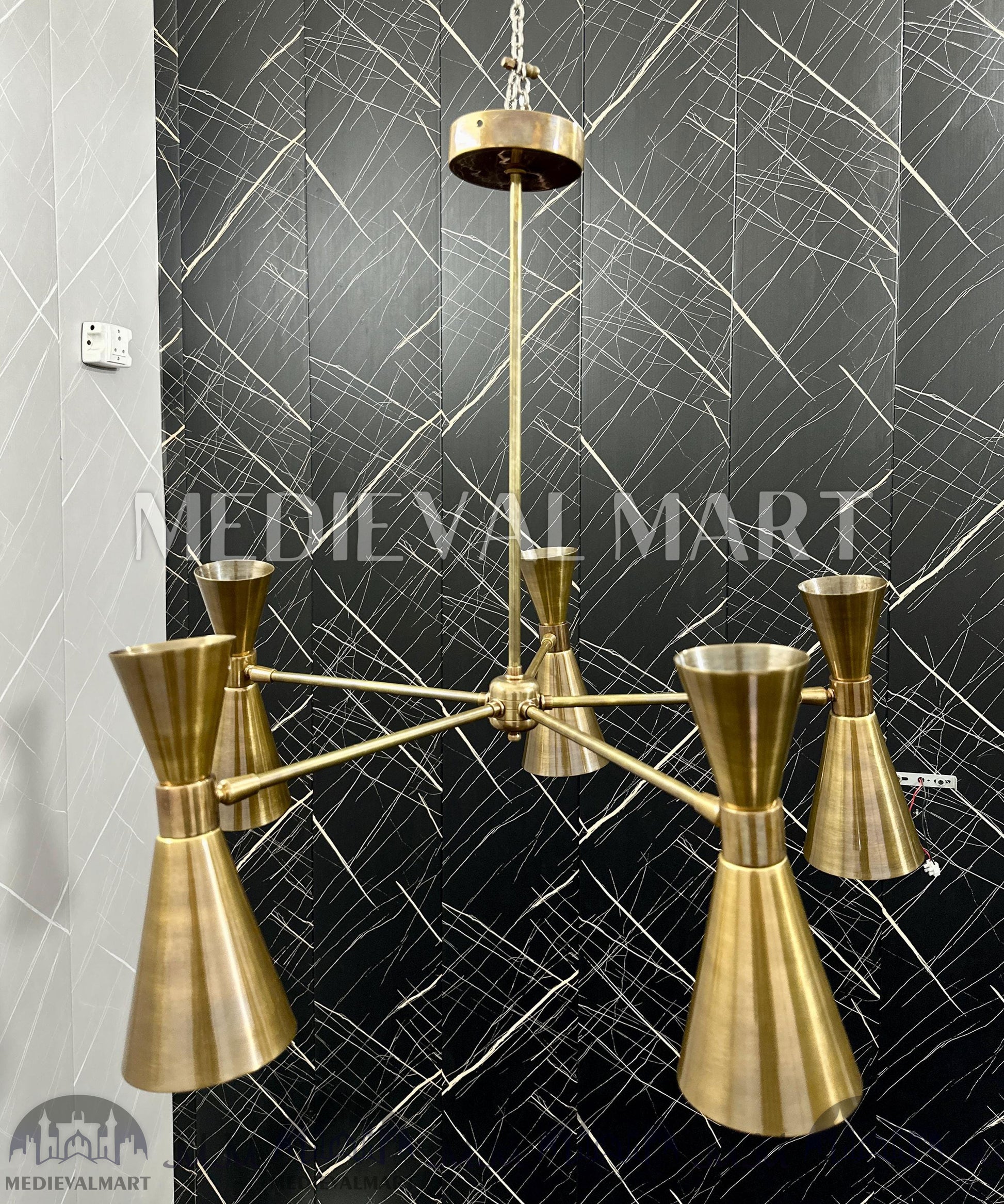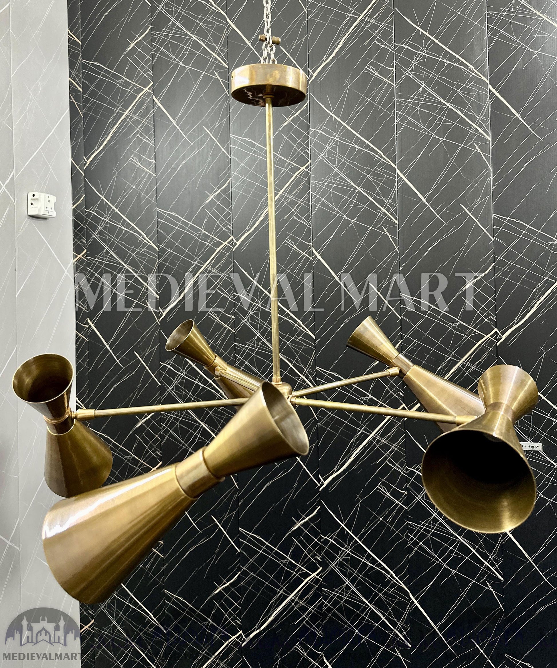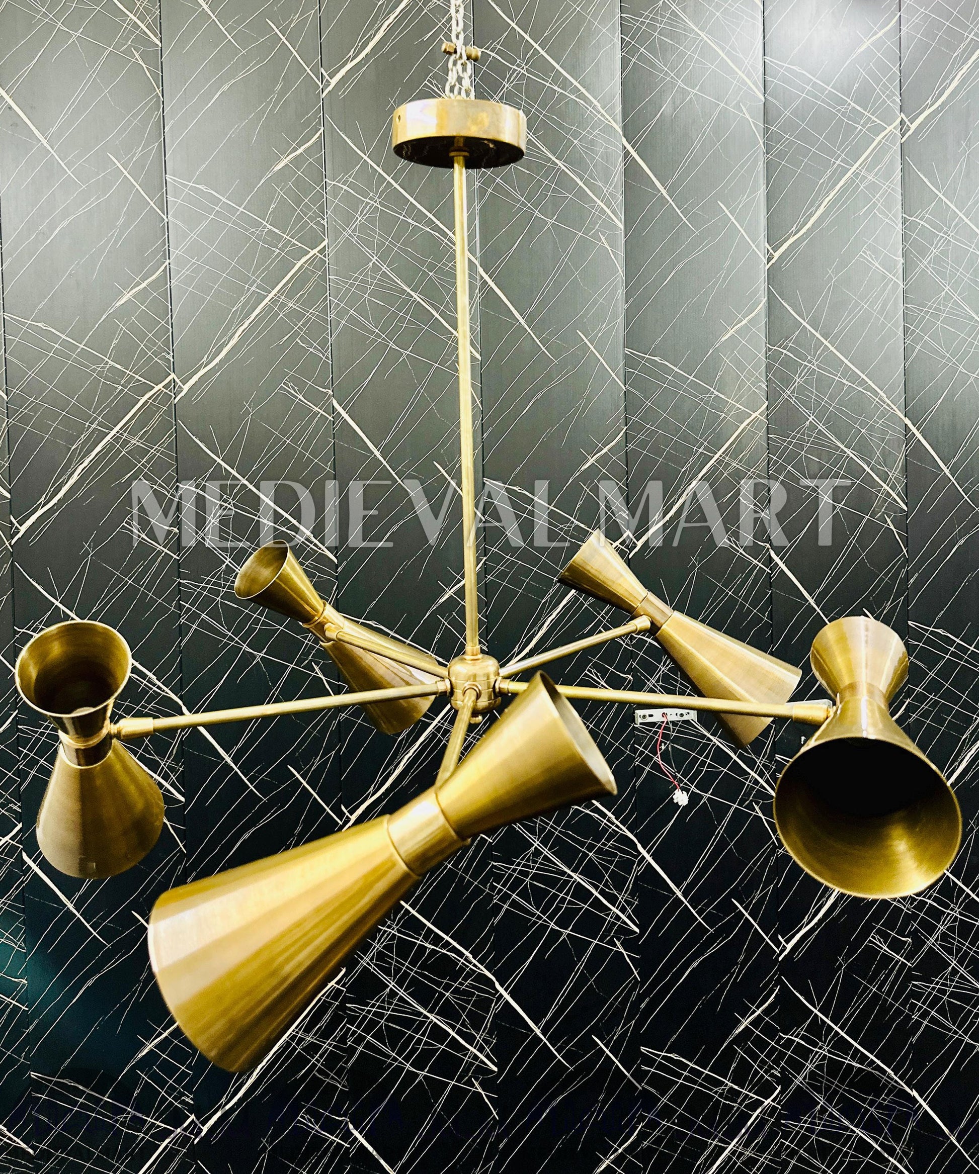 Illuminate your space with timeless sophistication through the MEDIEVALMART Mid-Century Modern Brass Chandelier, a striking statement piece featuring six adjustable arms that bring both balance and beauty to any interior.