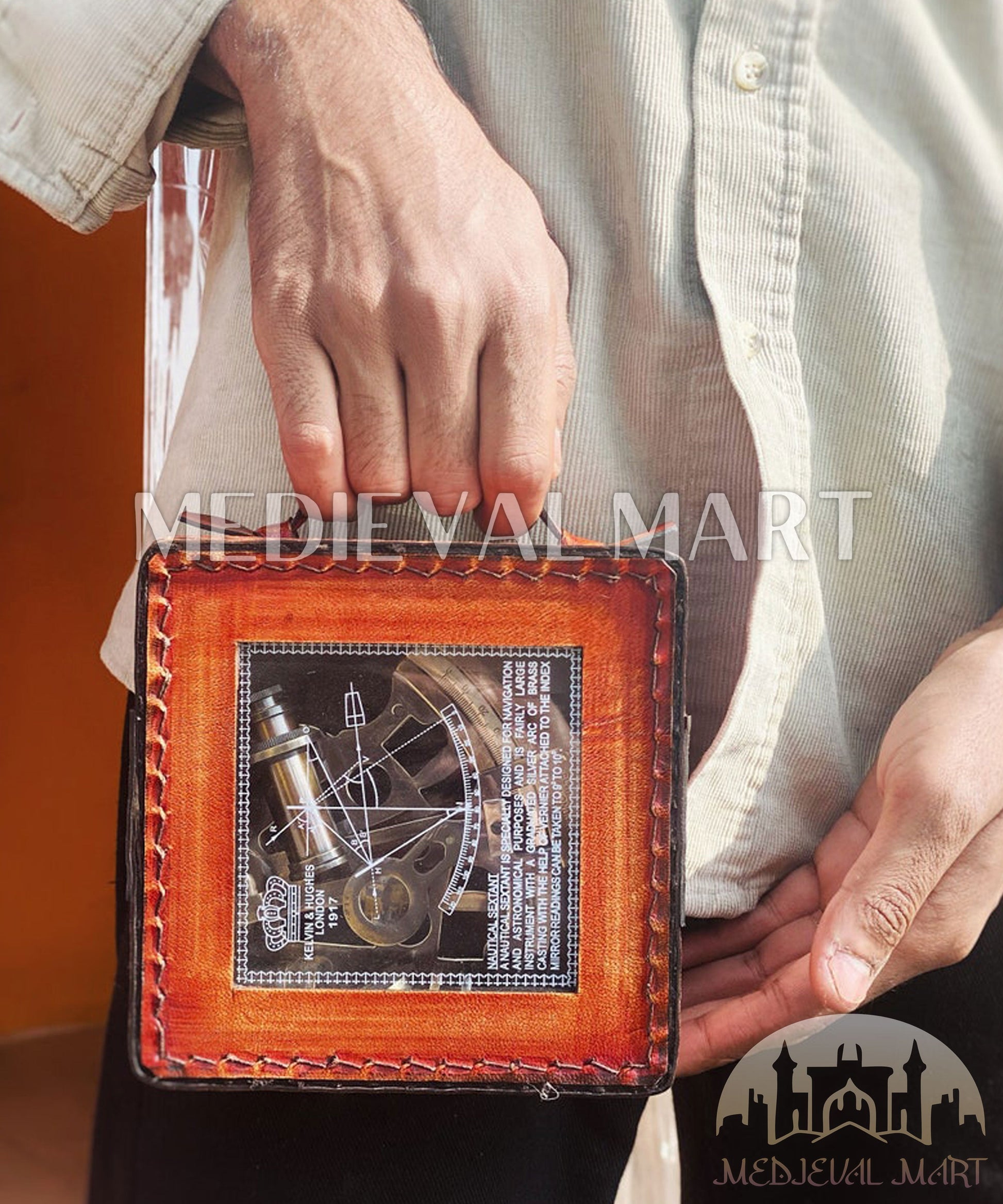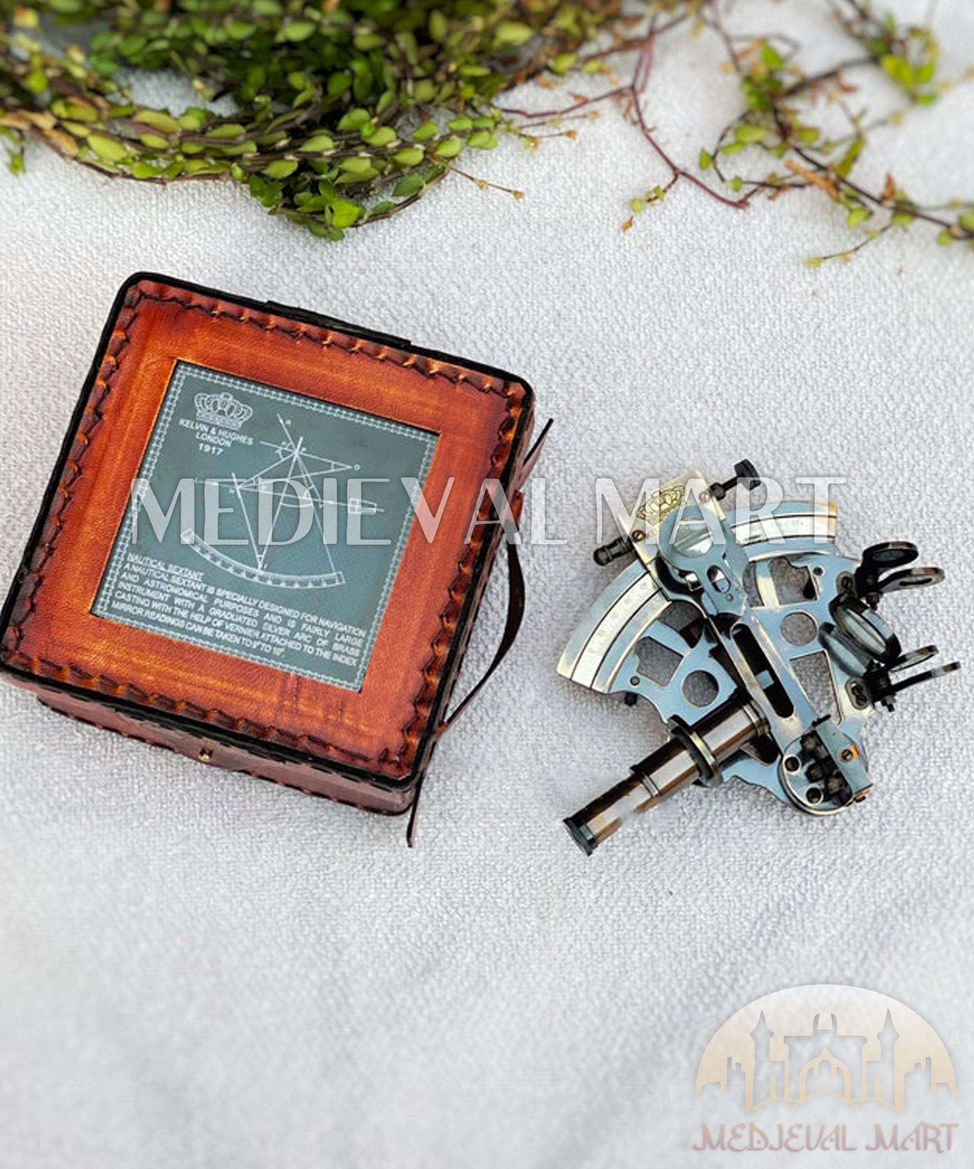 MEDIEVALMART Nautical Fully Functional Us Navy Sextant W/H Transparent Leather Case | Astrolabe Ships Instrument, Christmas Gifts