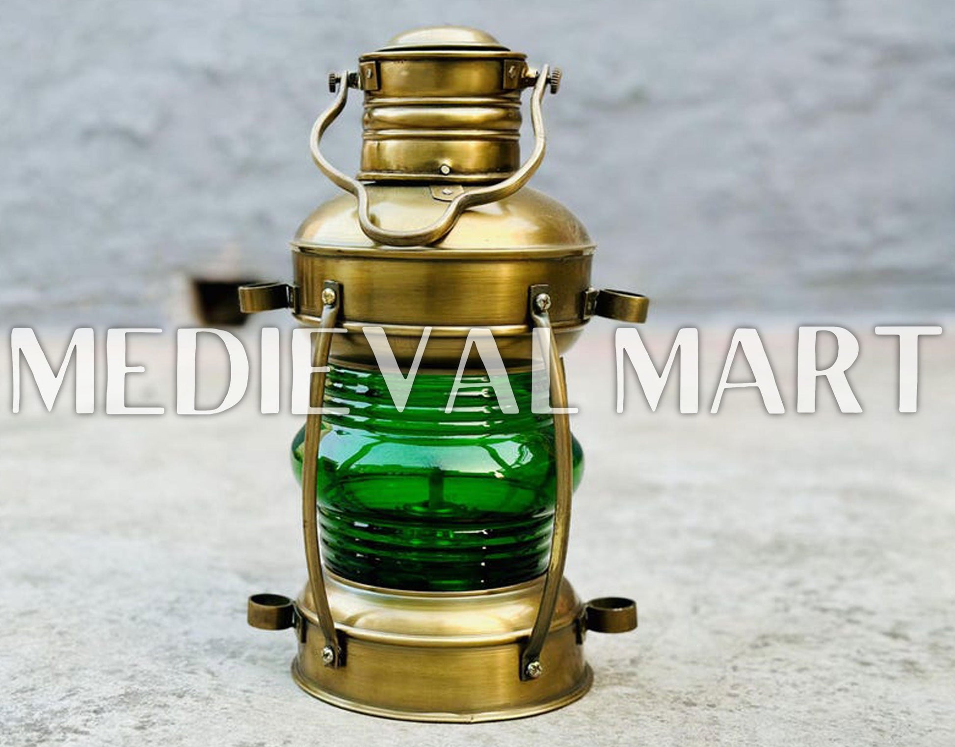 MEDIEVALMART Nautical Vintage Brass Green Glass Ship Oil Lamp - Personal Engraving Marine Lantern