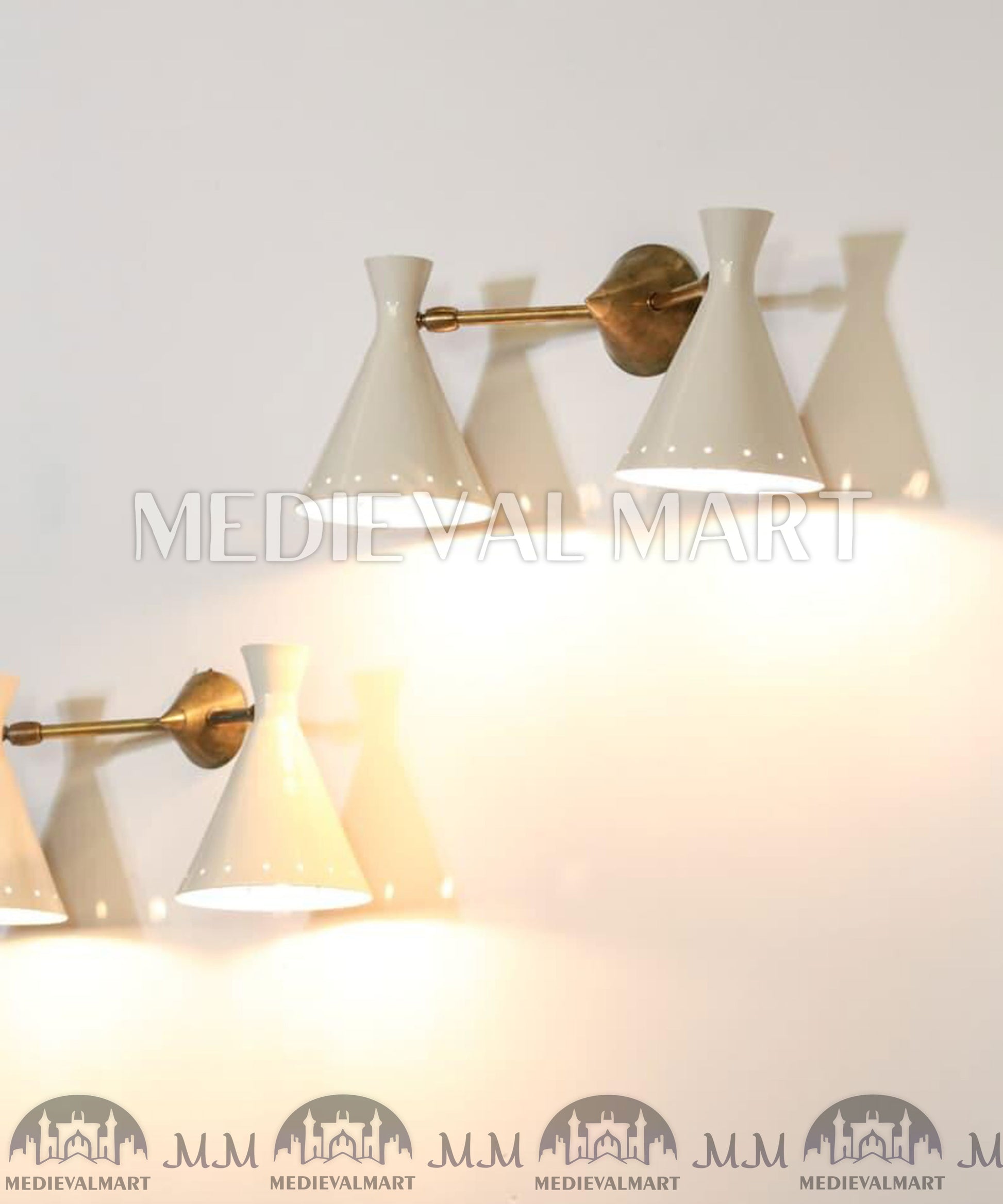 MEDIEVALMART Pair of Italian Beige Double Wall Lights: White Lamp Wall Decor