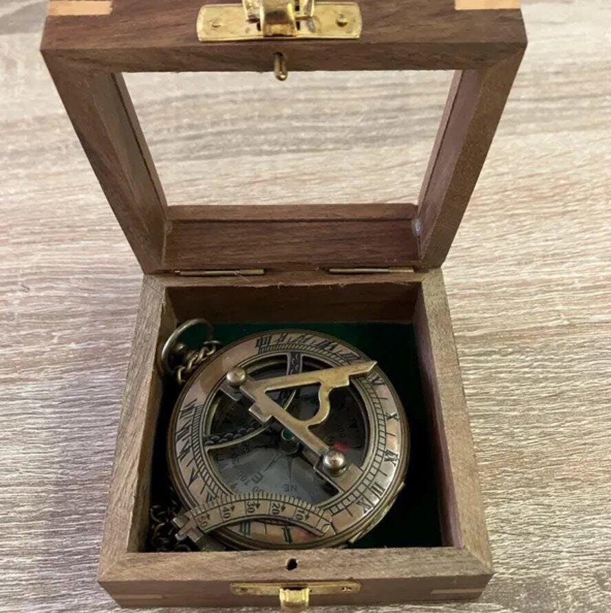 MEDIEVALMART Personal Engrave Sundial Clock Nautical Compass W/H Gen-1 Wooden Box | Gift For Her